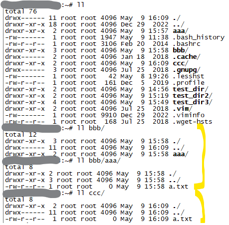 bbb/에 하위 디렉토리로 aaa/가 복사됨