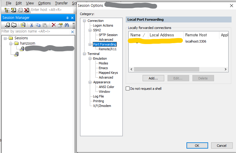 원격 서버는 오픈해둔 포트가 없다. 보안을 이유로 오픈되어있지 않다.