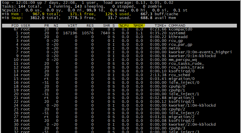 여기서 중점적으로 살펴보아야 할 부분은 cpu, mem을 많이 쓰는것 위주로.