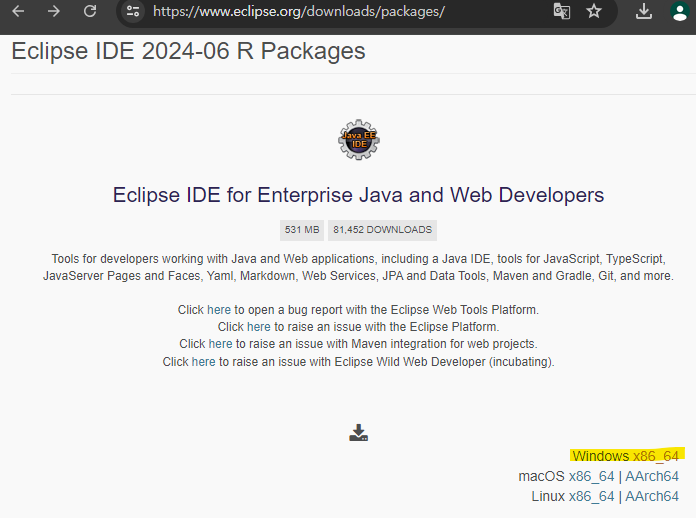 531 MB 81,452 DOWNLOADS Tools for developers working with Java and Web applications, including a Java IDE, tools for JavaScript, TypeScript, JavaServer Pages and Faces, Yaml, Markdown, Web Services, JPA and Data Tools, Maven and Gradle, Git, and more. Clic