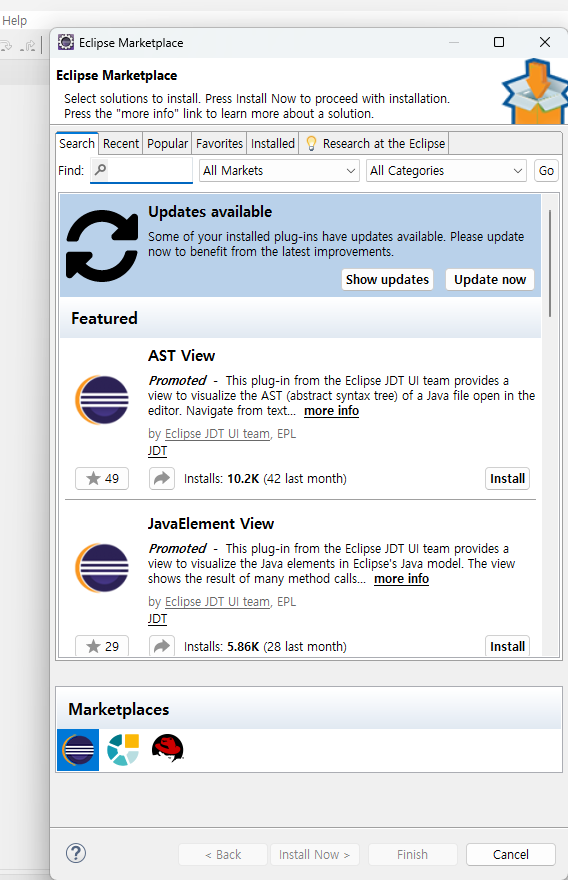 Help > eclipse marketplace