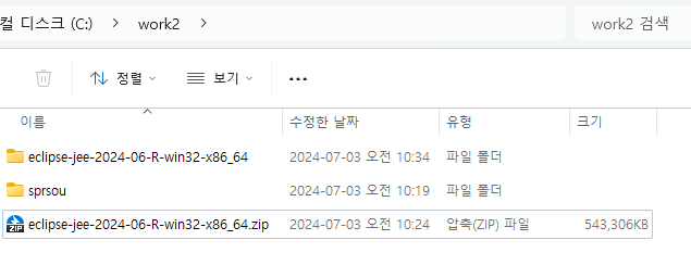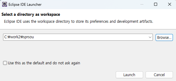 전에 작업물을 한것을 보면서 작업하고자, 저장폴더를 다르게+ 이클립스를 또 깔아준다.