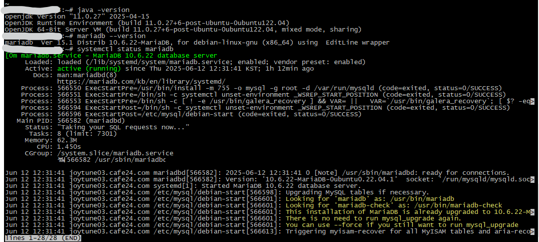 자바나 마리아디비나 기본 경로(/usr/bin)에 설치되기에 따로 경로설정을 해줄 필요는 없다.