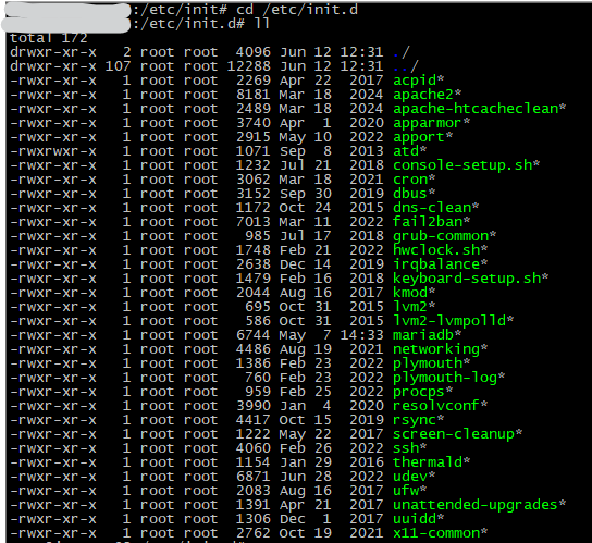 예를들어 S02apache2를 입력하면 링크이기에, ../init.d/apache2가 실행되는 것.