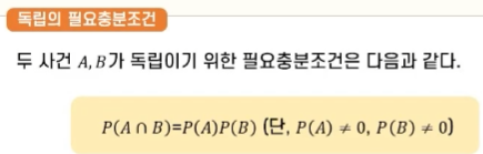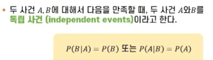 이를 두 사건은 서로 독립 independent 이라고 한다.