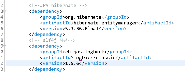해당 에러문구가 콘솔창에 지속적으로 뜬다. 이번기회에 pom에 필요한 소스코드 추가하고 가보자.