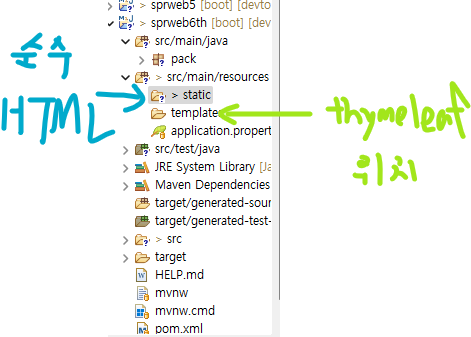 보통 시작하는 html은 static에, 최종적으로 보여주는 html은 template 폴더 위치하게된다.