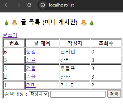 <h3>🎄🧸 글 목록 (미니 게시판) 🧸🎄</h3>