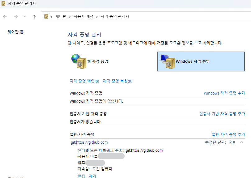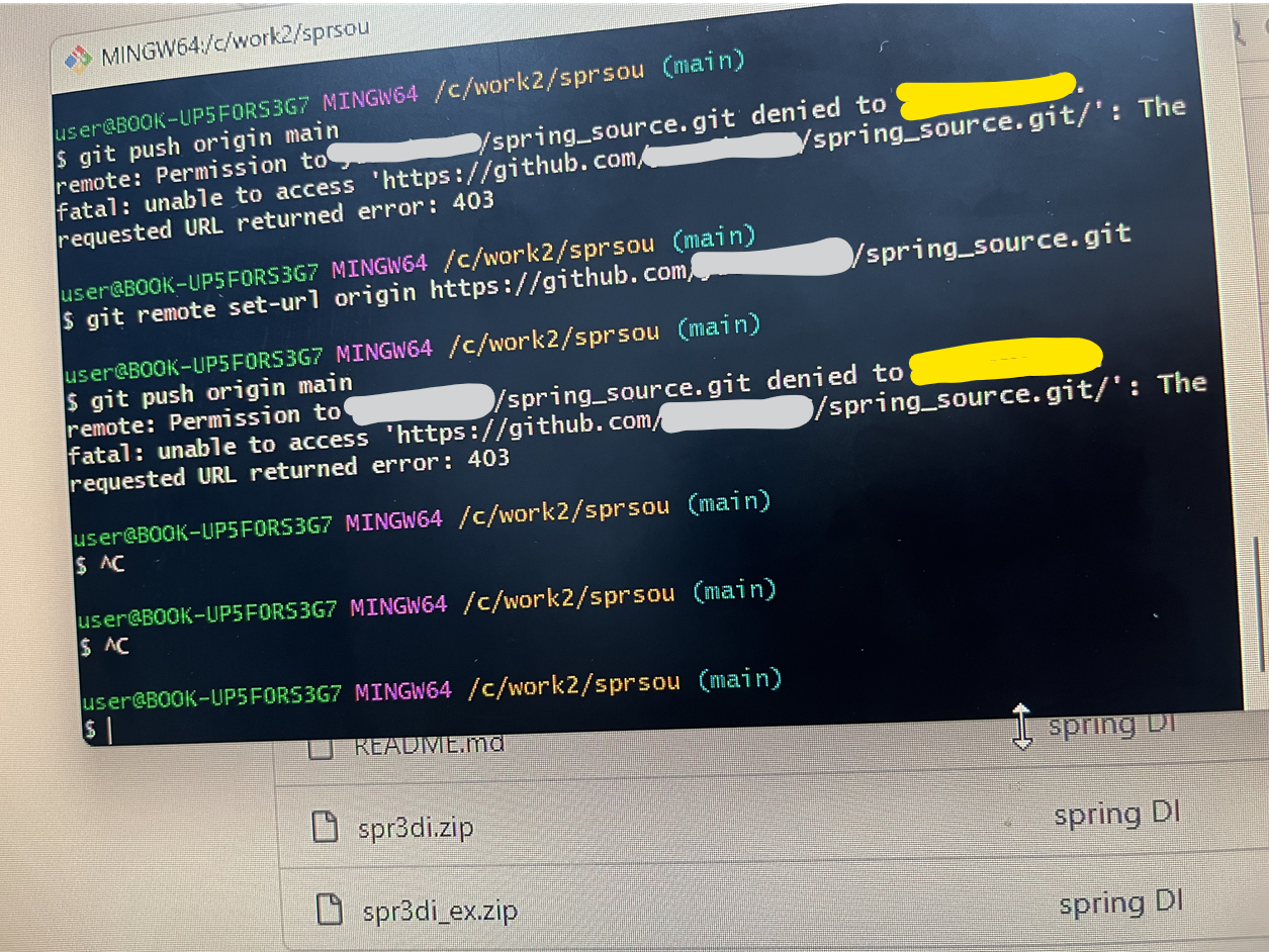 전사용자의 깃허브 계정정보가 남아있어서 거부되었던것.