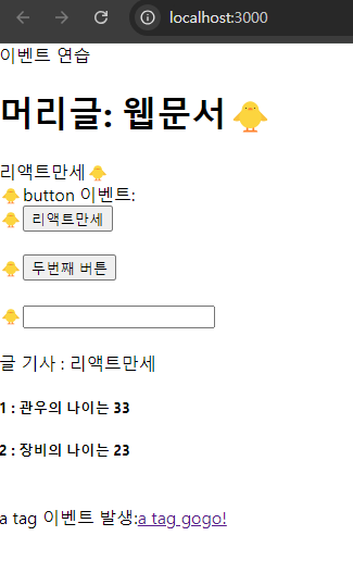 🐥<button onClick={clickHandler}>두번째 버튼</button>