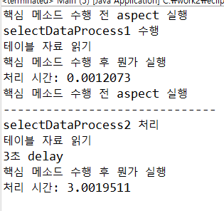 aopinit.xml execution에서 or execution(public void selectAll() 이 부분을 지웠을때 출력된 결과.