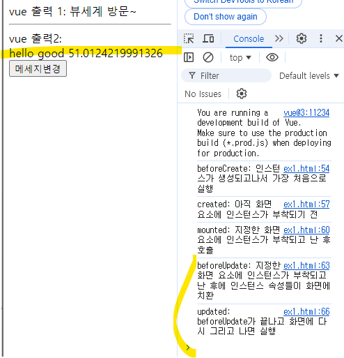 console.log('beforeUpdate: 지정한 화면 요소에 인스턴스가 부착되고 난 후에 인스턴스 속성들이 화면에 치환')