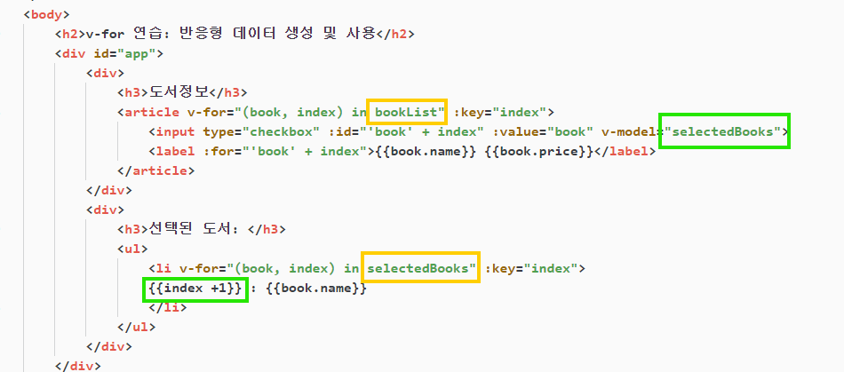 체크박스와 selectedBooks 배열 사이의 데이터 바인딩을 처리하는 데 사용된다. 체크박스가 선택되면 selectedBooks 배열에 해당 책 객체가 추가되고, 체크박스가 선택 해제되면 배열에서 제거된다.