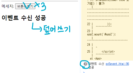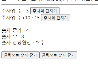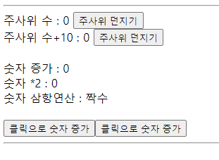 주사위 수 : {{number}} <button v-on:click="rollDiceEvent">주사위 던지기</button><br/>