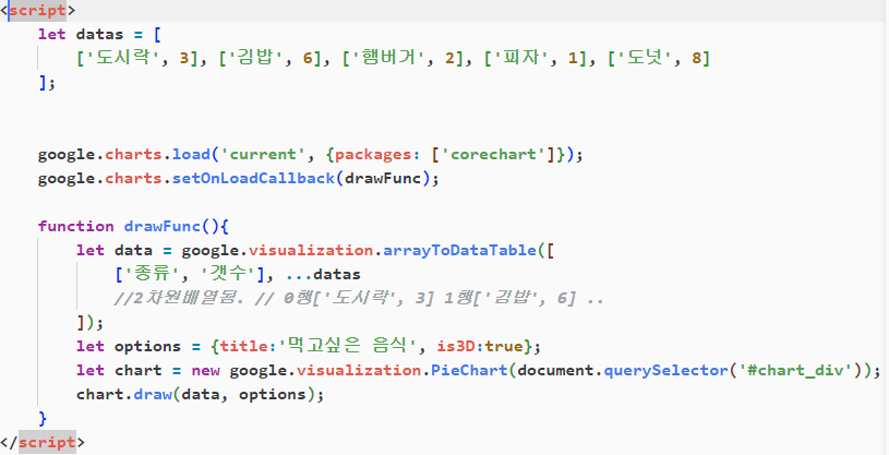 let options = {title:'먹고싶은 음식', is3D:true};