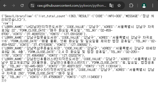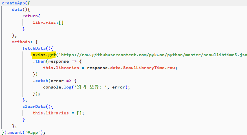 axios.get('https://raw.githubusercontent.com/pykwon/python/master/seoullibtime5.json')