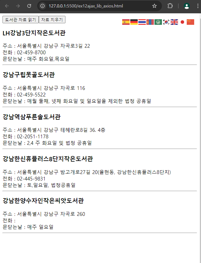 12 fetch대신 axios로 json 출력해보자_ 똑같이 도서관자료