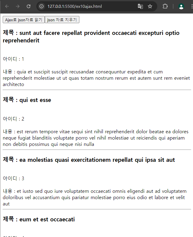 10 ajax로 json자료 받아 출력해보자. 더미데이터로 시도해본다.