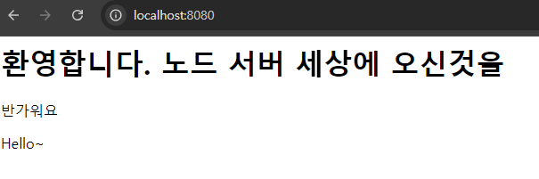 res.write('<h1>환영합니다. 노드 서버 세상에 오신것을</h1>');