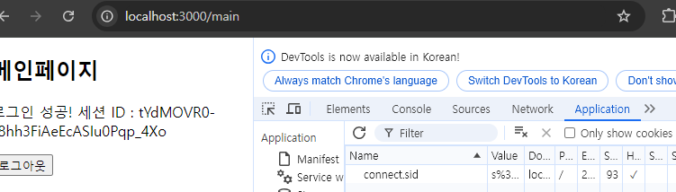 res.clearCookie('connect.sid'); //sid: 세션아이디. 세션쿠키도 삭제.