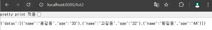이 data2를 반환하면, 전체 데이터 리스트가 "datas"라는 키 아래 포함된 JSON 형식으로 클라이언트에게 전달됩니다.