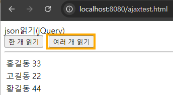 {"datas":[{"name":"홍길동","age":"33"},{"name":"고길동","age":"22"},{"name":"황길동","age":"44"}]}