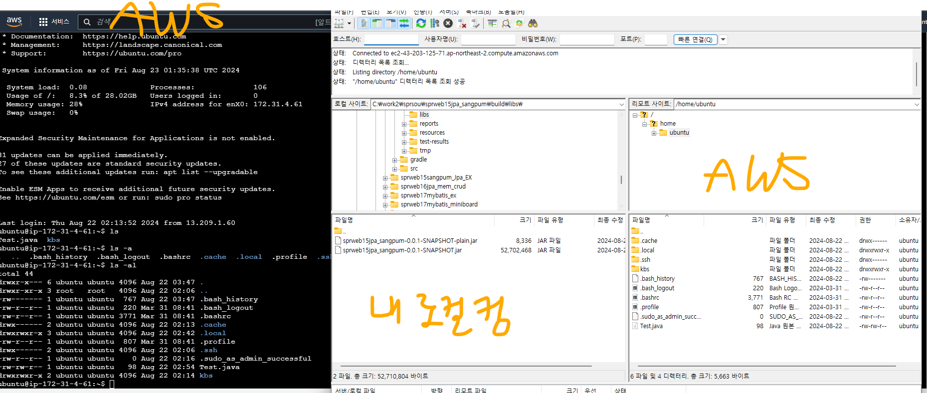 | ubuntu에 윈도우에서 만든 스프링부트 jar 파일 배포하기 (0) | 2024.08.21 |