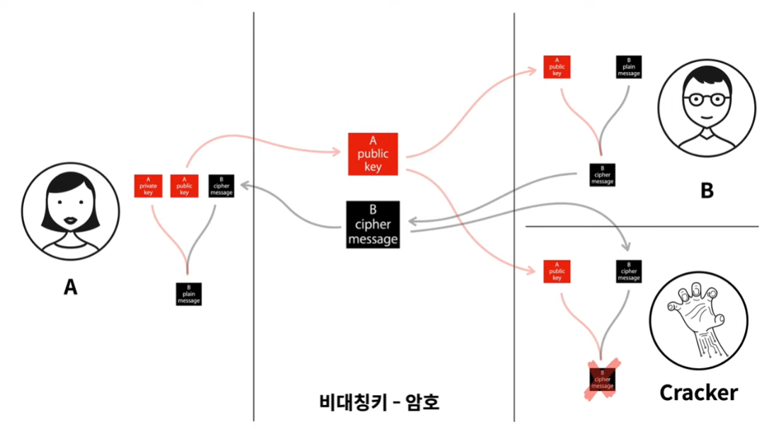 https://www.youtube.com/watch?v=MR4sCU82tgo&t=4s대칭키 암호화 방식은 해커들에게 쉽게 노출될 수 있다.이를 해결하고자 등장한게 RSA 비대칭키((공개키)) 암호화 방식이다. RSA 공개키 암호화 방식은 메시지를 암호화할 때 사용되는 공개키, 암호화된 메시지를 복호화하기 위한 개인키가 존재. 두 키는 한쌍으로 생성되어 관리됨.서버 Server --- 웹 사이트 Web Site1. 사이트에서 코모도, 구글 등 인증서 발급해주는 사이트에 물어본다. 이 사이트의 인증서 너네가 발급해준거로 되어있는데 맞아? 라고 확인하는 것.2. 그러면 인증서 발급 사이트에서 응답이 온다. 맞다. 3. 그러면 해당 사이트는 사용자가 기입한 정보, 예를 들어 이름, 핸드폰번호를 모두가 가지고 ..