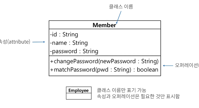 클래스 다이어그램은 시스템의 클래스, 해당 특성, 작업(또는 메서드) 및 개체 간의 관계를 보여줌으로써 시스템의 구조를 설명하는 일종의 정적 구조 다이어그램 입니다 .\+: public\-: private(공백)